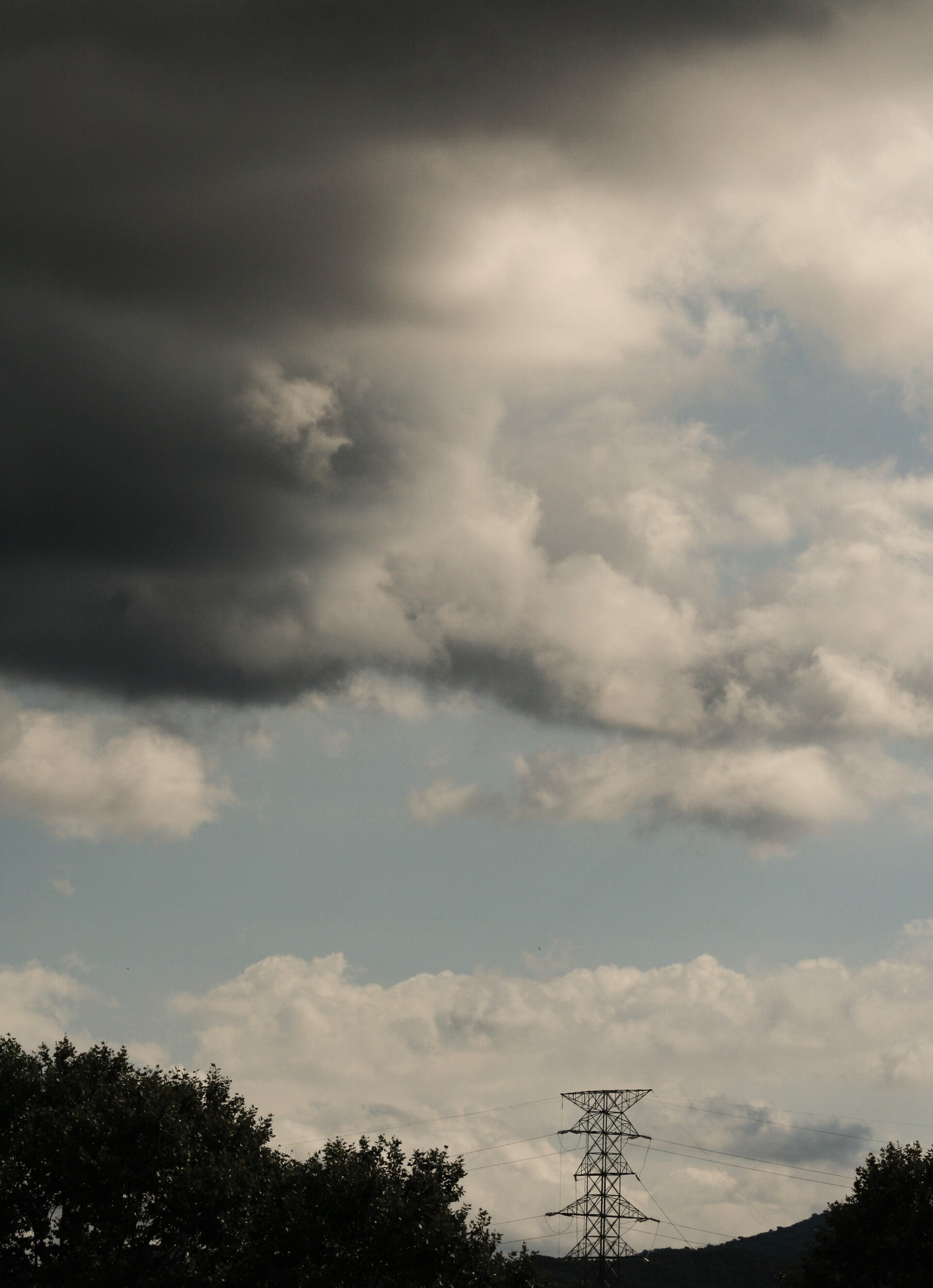 We are lucky enough to live on the top floor of an apartment, with a nice view (LaTorreDel Moro) and a not so nice view (An Electric Pylon) sitting directly in front of our balcony some distance away. Weather conditions against the foreground of the hill and the tower can be quite spectacular and if conditions are right the pylon can become not that boring at all. It would be silly not to try and capture some of this meteorological "theater" that happens from time to time. A longer lens to capture the Tower would be better but a 250mm Canon lens manages to capture enough detail. The photos in this gallery will be a record ,not actually of the two structures but of the exceptional shapes, forms, colors and shadows of the passing cloud formations against a background of sky and foregrounds of both power pylon and the tower. Most of these images are captured either early in the morning and in the evening when meteorological activity is stronger and colors more alive. Some of the photos I have stitched together to capture more detail and add space to the scenes.